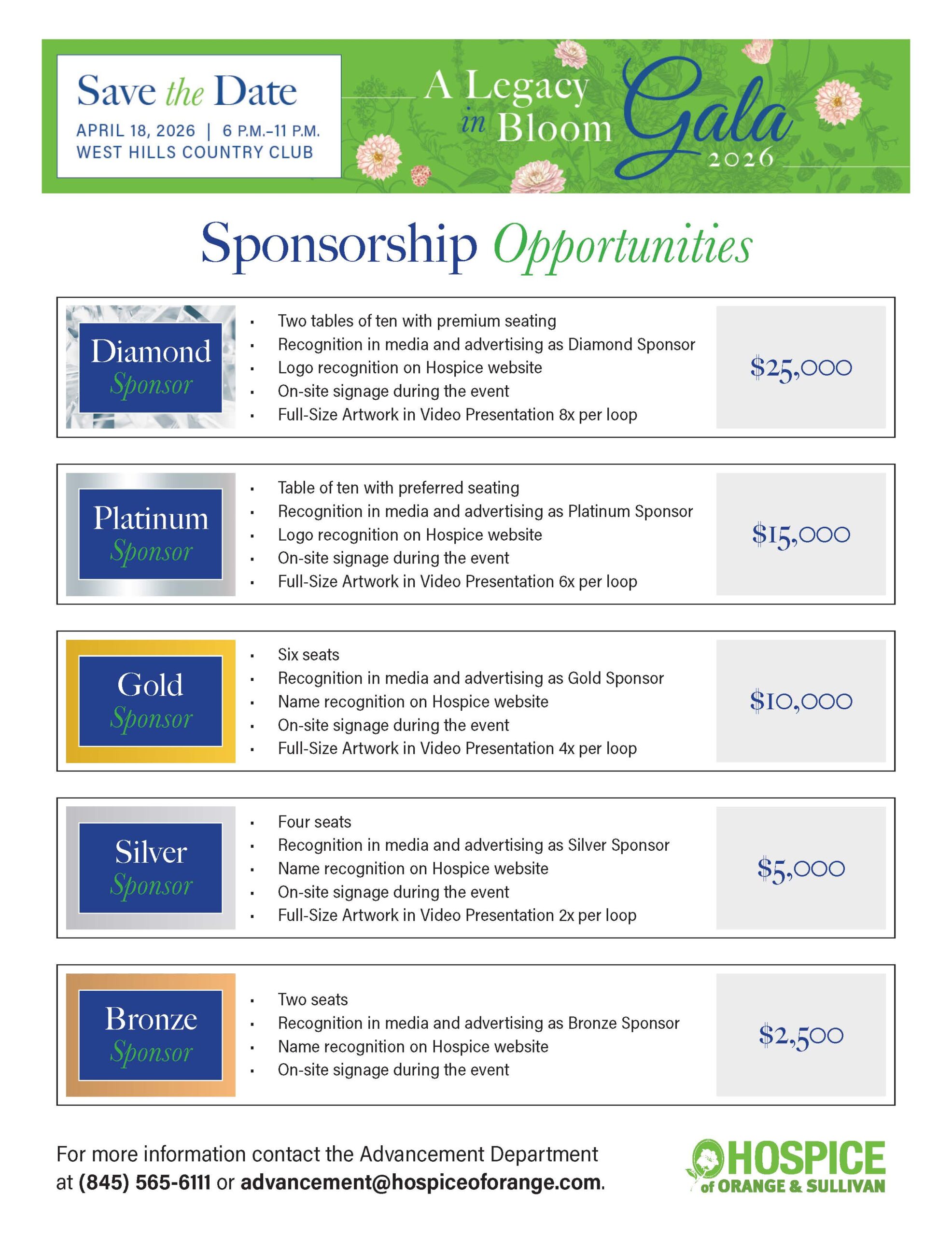 Join us here! We welcome your call for sponsorship level details and more information: (845) 561-6111